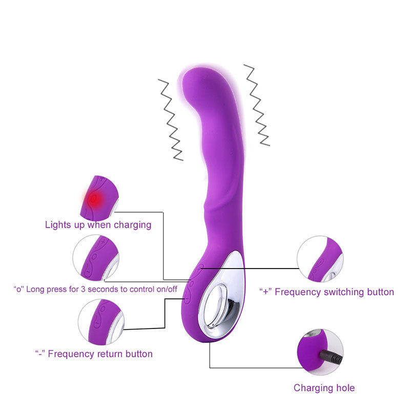 Vibrador de silicón suave Estimulador de punto G 10 funciones Resistente al agua (no sumergible) Recargable USB 20.5 x 3 cm